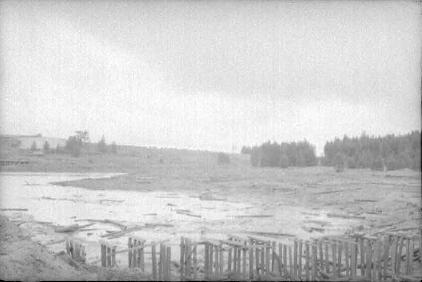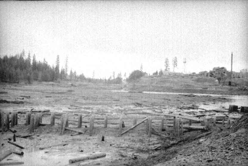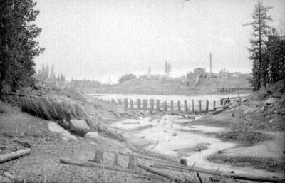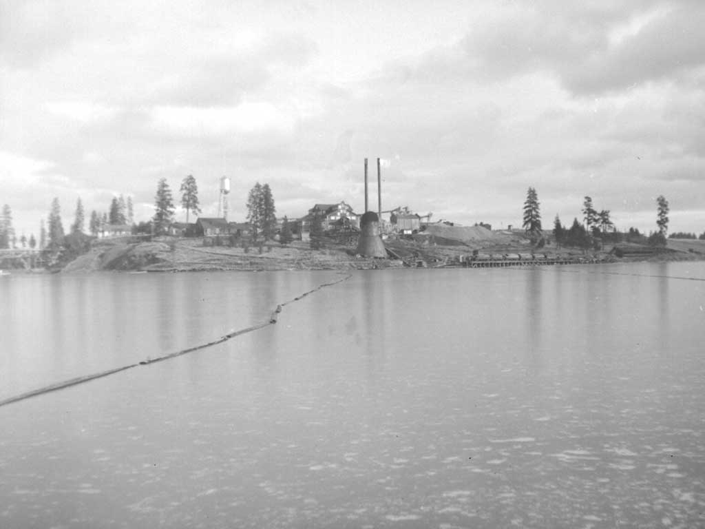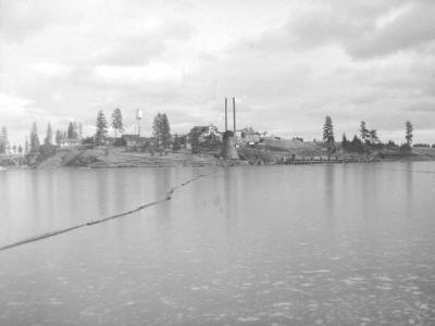 CML Winchester mill from across the lake December 22, 1946 by Ivan Ergish. CML had two log dumps, a 'Winter dump' and a 'Summer dump.' "One was at the mill and the other was across the lake. I don't remember which dump was which or why they had the two dumps. One of the dumps shows in the background of the dump at the mill in one of the scans of camp cars."