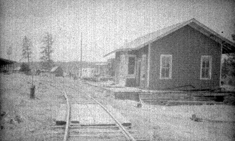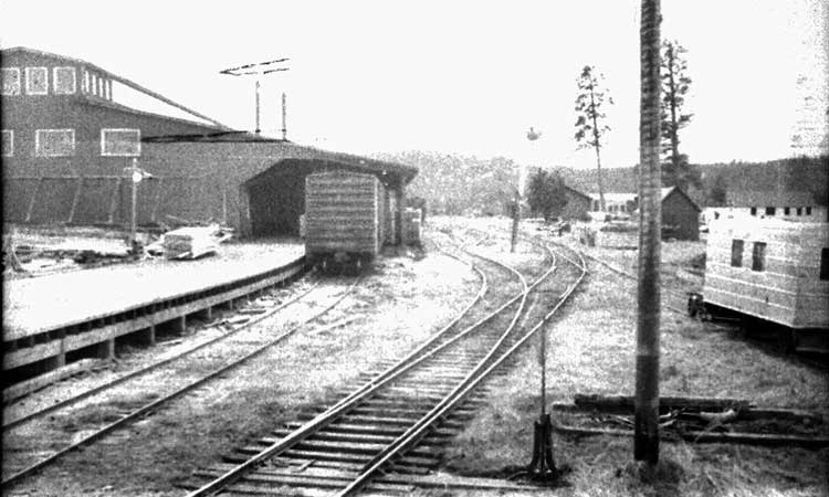 Craig Mountain Lumber Railroad Winchester Depot. 1949 Ivan Ergish Photo.