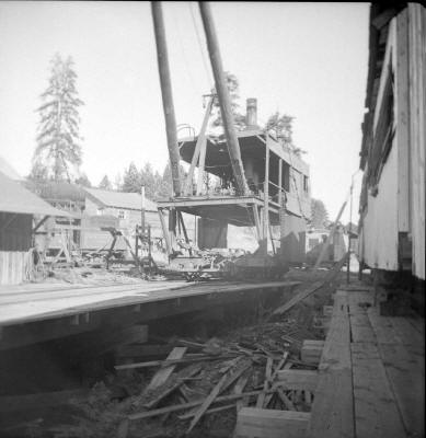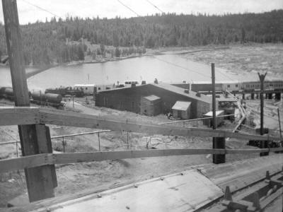 Craig Mountain Lumber Tank # 2 on coal dock trestle. 1949 photo by Ivan Ergish.