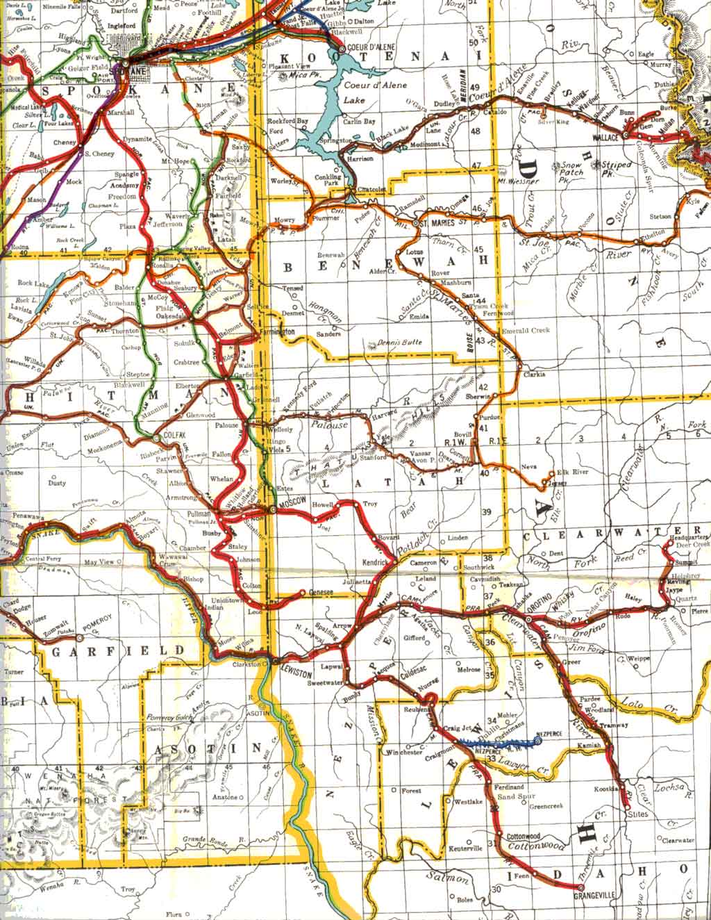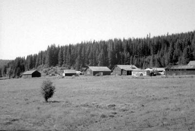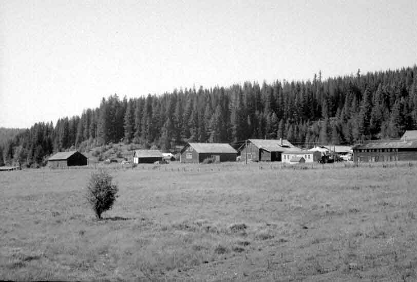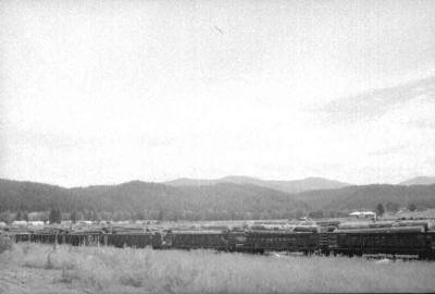 Rutledge town: Clarkia, Idaho August 9, 1964. Ivan Ergish photo. Notice MILW wood side gons for log service in foreground.