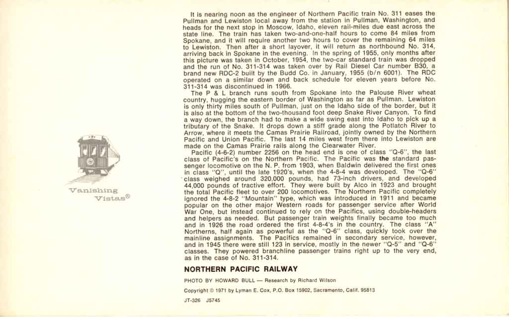 October, 1954 Howard Bull photo of NP 2256 in Pullman, WA. Click to see back.