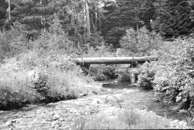 Rutledge Merry Creek: Rutledge railroad bridge at the confluence of the East and West forks of Merry Creek August 9, 1964 Ivan Ergish photo.