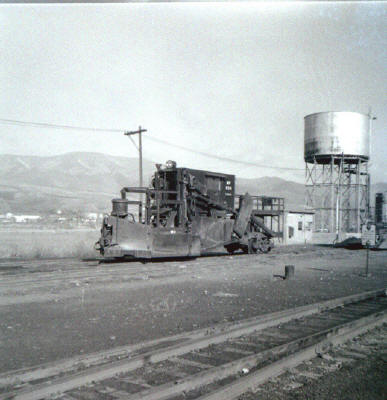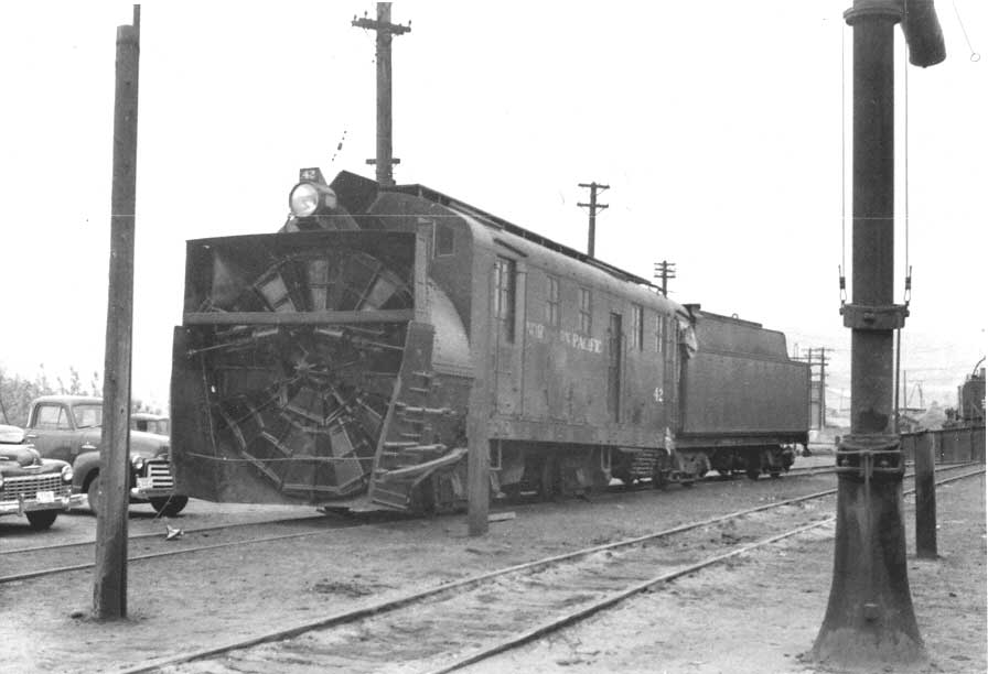 CSP NP 42: East Lewiston, ID July 2, 1956. John adds "Memory and the tender tell me this is one of the rotary plows the NP acquired from the Copper River and Northwestern, Cordova, AK, after they shut down in 1942. For years this plow was assigned to Spokane and kept in the NP roundhouse along with NP 684 4-4-0 (ex NP&I # 4)." | |