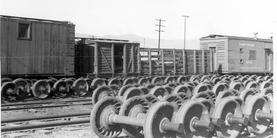 Tie car, East Lewiston, Idaho April 8, 1952 Car # unknown. Ivan Ergish Photo. | |