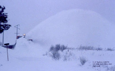 On Dec 30, 1996 the plow is crossing Lawyers Canyon. Paul Mack photo. | |
