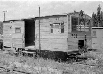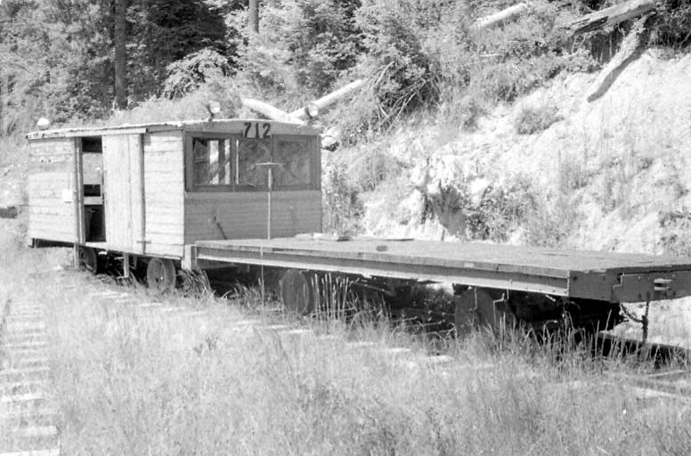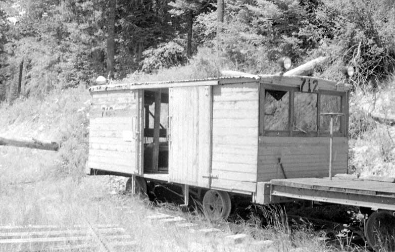 PFI 701. Headquarters, ID July 14, 1957 A classic example of an early Gibson manufacturing Company speeder. Craig Mountain Lumber Company had at least one similar machine. Ivan Ergish photo. |
