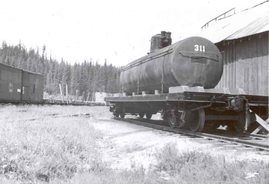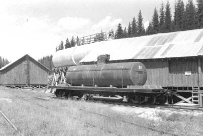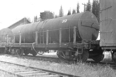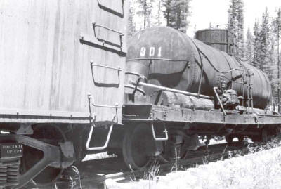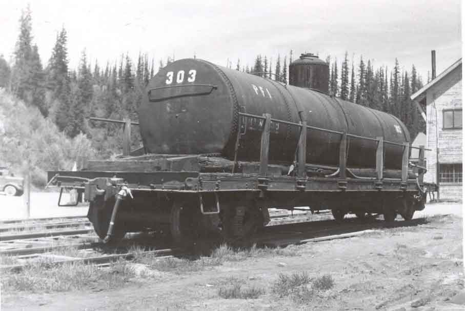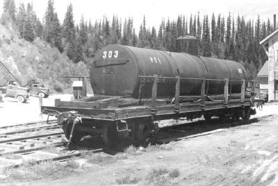 PFI 301: Headquarters, ID July 14, 1957. Ivan Ergish photo. It looks to me like this scan of PFI 301 shows an identical tank car to the PFI 303 EXCEPT that the "bunks" holding the tank are now "factory" built. |
