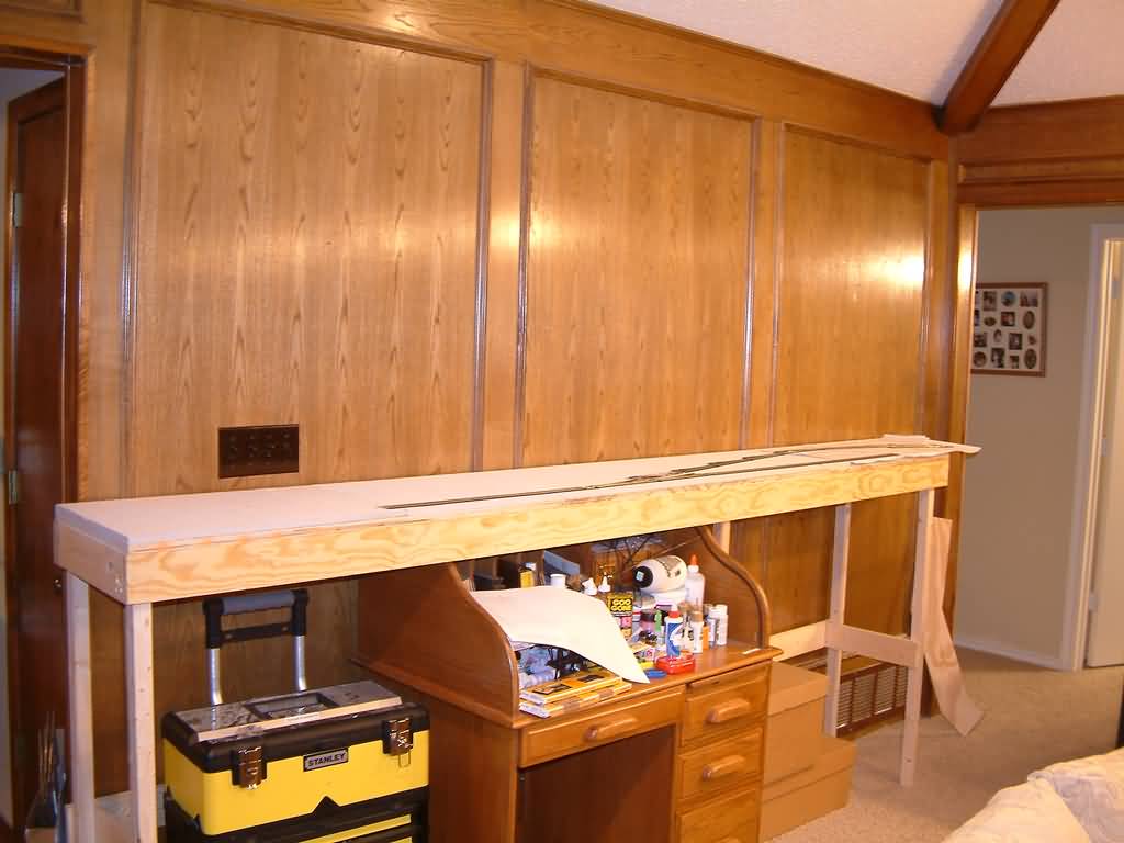 Benchwork Height: 45.5" This is set by the 41" tall bookcases that I get at Target. I started with 48" tall cases, but I didn't like the overall height.