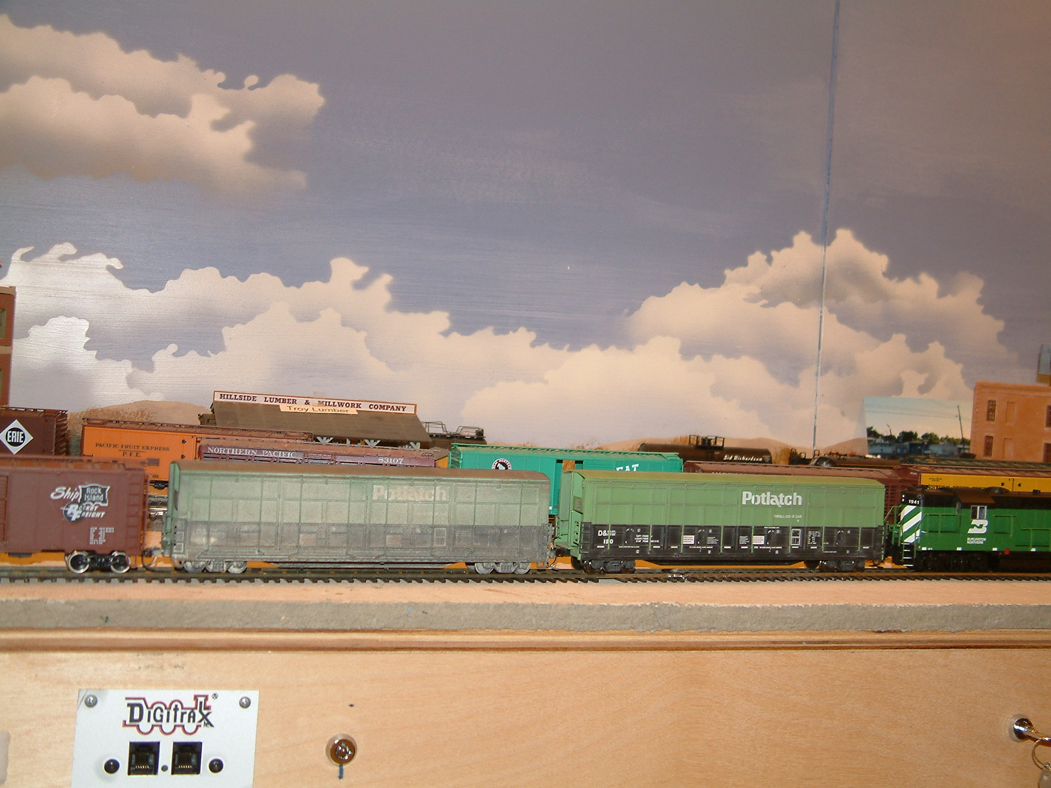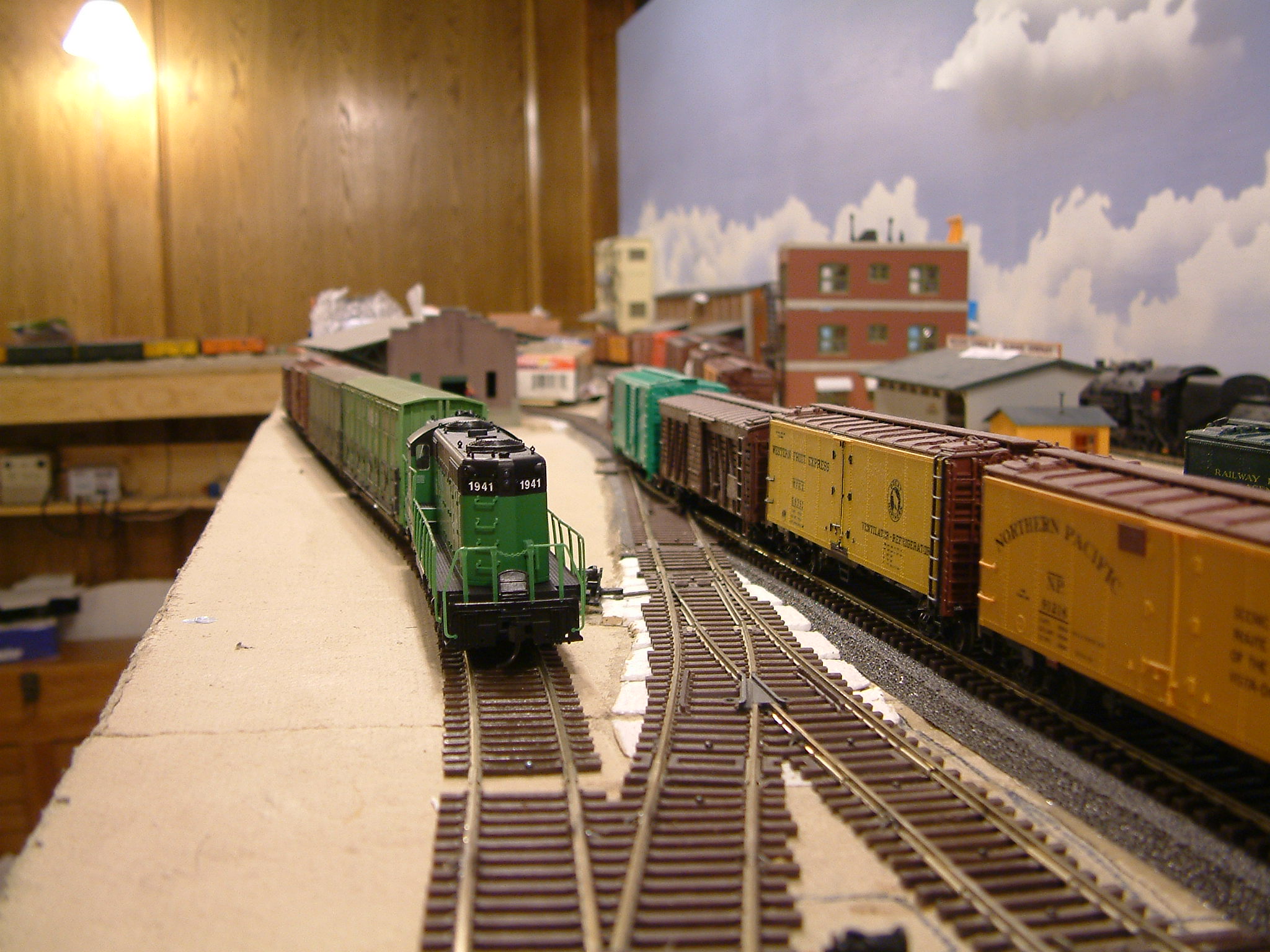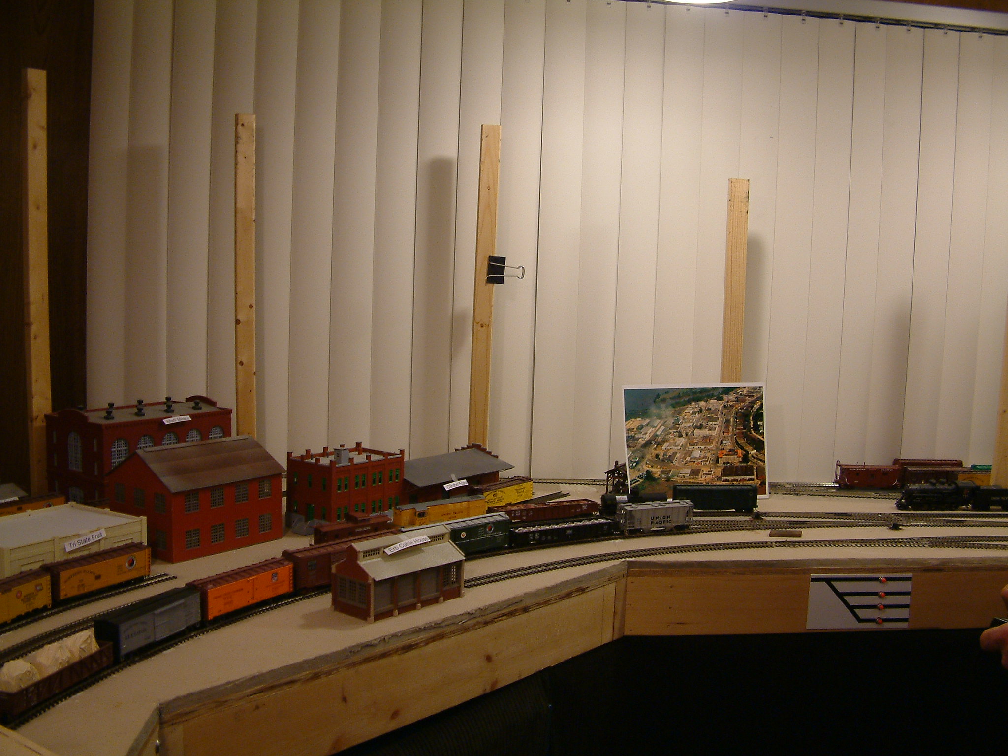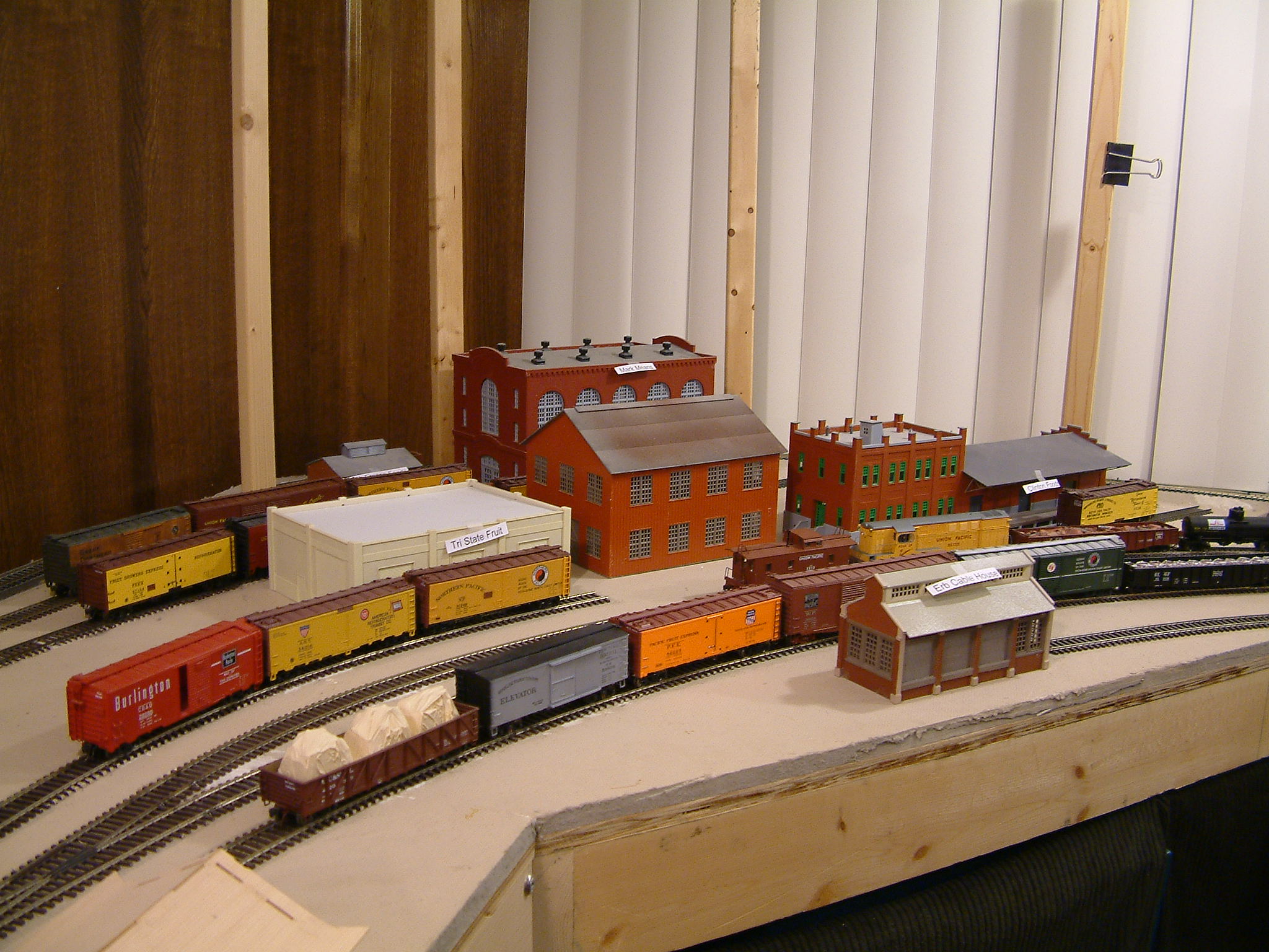 Welcome to my switching layout's photo page. I started working on this layout in August 2002, and it has made slow progress. The layout sat for several months with no track or structures while I worked on the plan. Some general information about the layout: