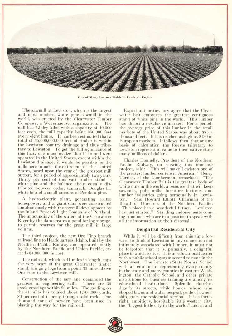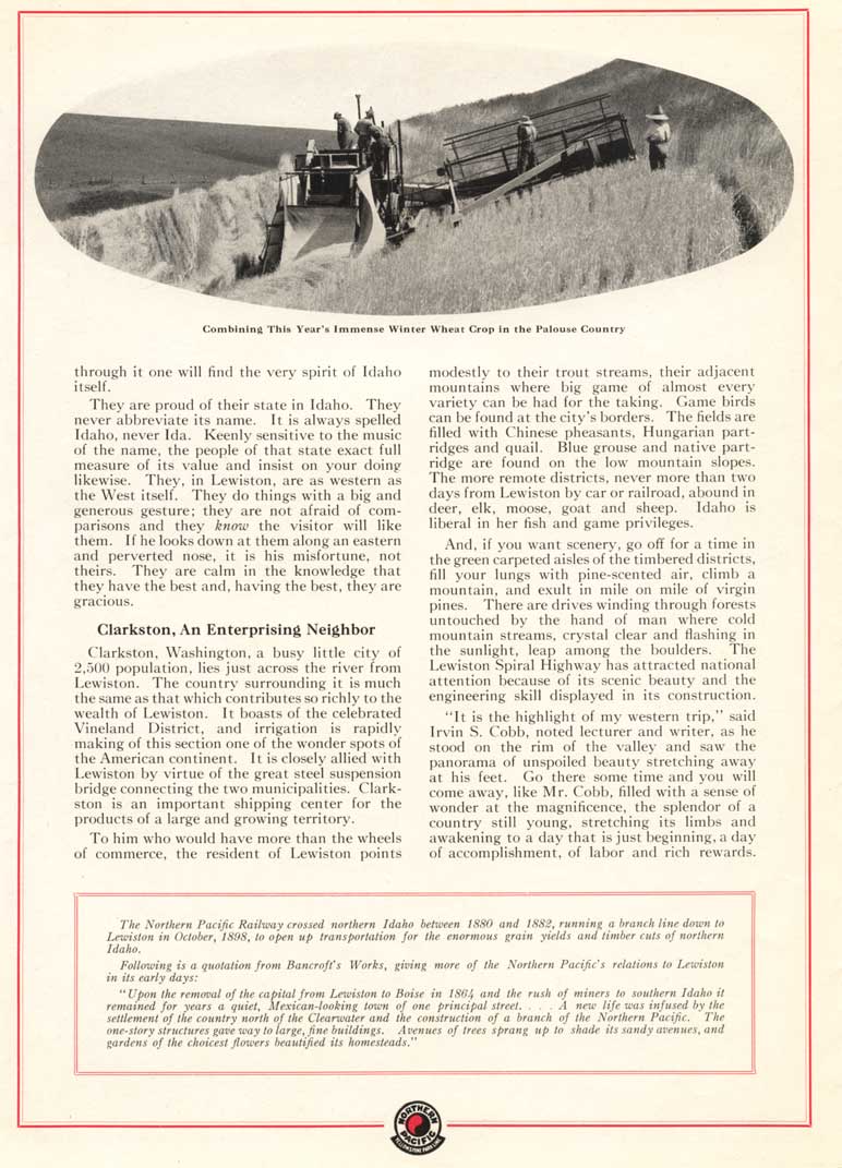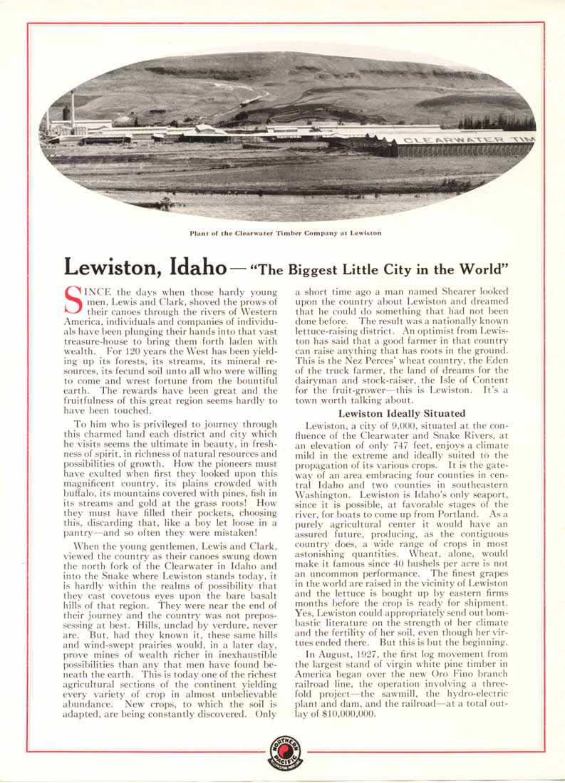 These pages are from the Northern Pacific's brochure to promote Lewiston. The brochure is not dated, but is from sometime after 1927.